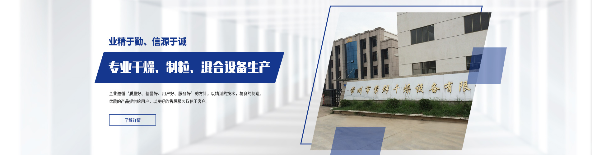 常州市常群干燥設備有限公司是專業從事干燥設備、制粒設備、混合設備生產的企業。公司經過十多年的發展歷程使企業在涉足的領域中積累了豐富的經驗。通過與業界的精誠合作,隨著干燥行業的蓬勃發展,在“常群人”不懈的努力下,常群公司成為優秀的設備制造企業,在同行業中表現優異。